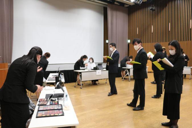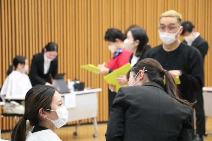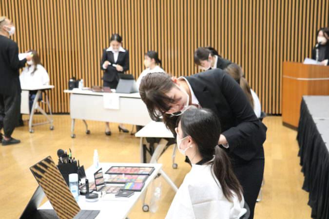 審査員の方々に間近で接客の様子やメイクの仕方などを見られる緊張感の中ではあったものの、今まで学んできた基礎や練習の成果を存分に発揮できていました👏♡