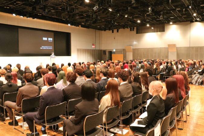 新しい春が訪れ、アクロス福岡にて新入生歓迎式が行われました。緊張と期待でに胸を膨らませた新入生の皆さんが、会場に集まりました。オオムラでの学びに、みんなワクワクしているのを感じました。