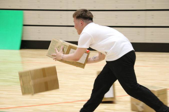 最初の競技は宅配便リレー ε≡≡ヘ( ´Д`)ノ。