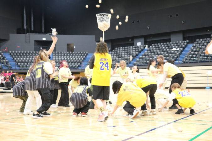 曲に合わせてダンス♪をしながら曲が止まると玉入れスタート!