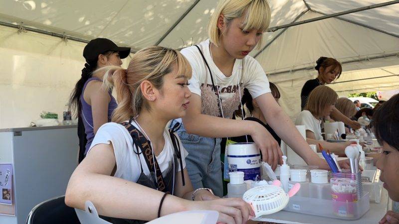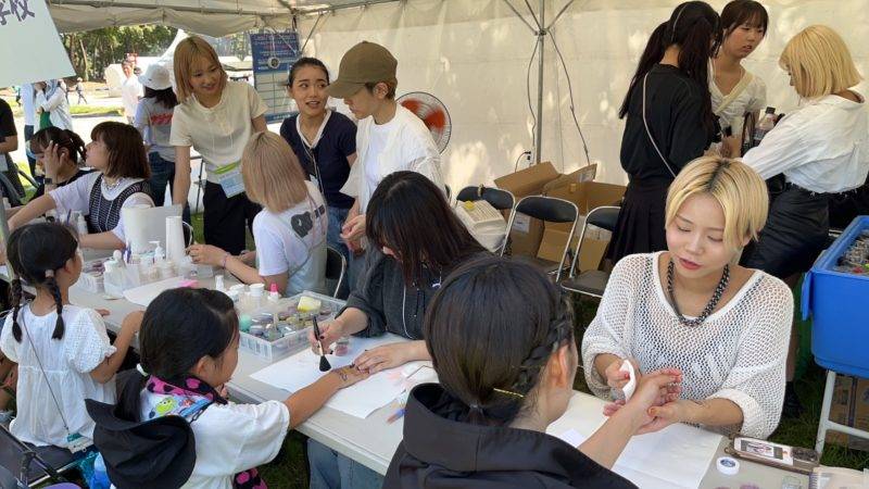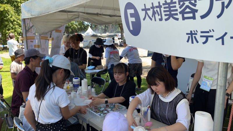 この大会ではKBCから依頼をいただき、美容科の学生たちが、「ボディジュエリー」のサービスを行いました。大人気のサービスブースとなり、子どもから大人の方まで多くの参加者に楽しんでいただきました!