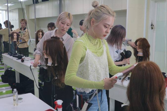 本日は、特別授業の紹介です。カミカリスマにも選出された卒業生、VIOLET前原穂高さん(宮崎県出身)にお越しいただき「ヨシンモリ」など韓国スタイリングとヘアレンジの授業を行っていただきました。