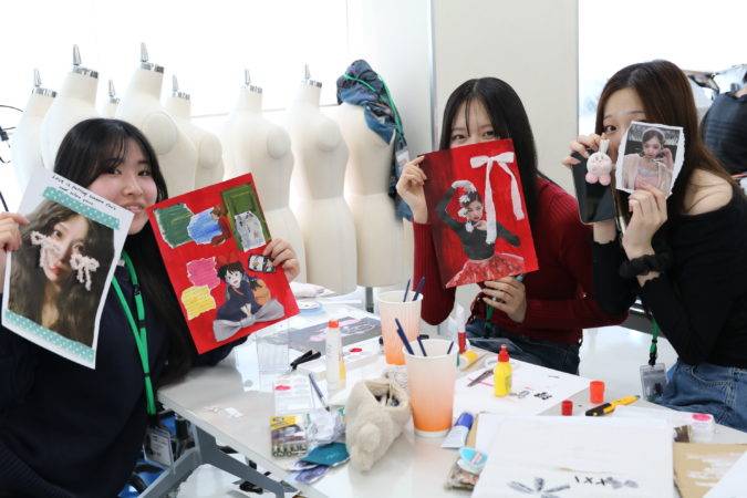 ARAKI さんの授業は、ファッションの世界での活躍経験を活かした刺激的な内容でした。今回の授業では、発想力を養うためのワークショップが行われ、『自分の好きなもの』をテーマに、コラージュを作成することに挑戦しました。