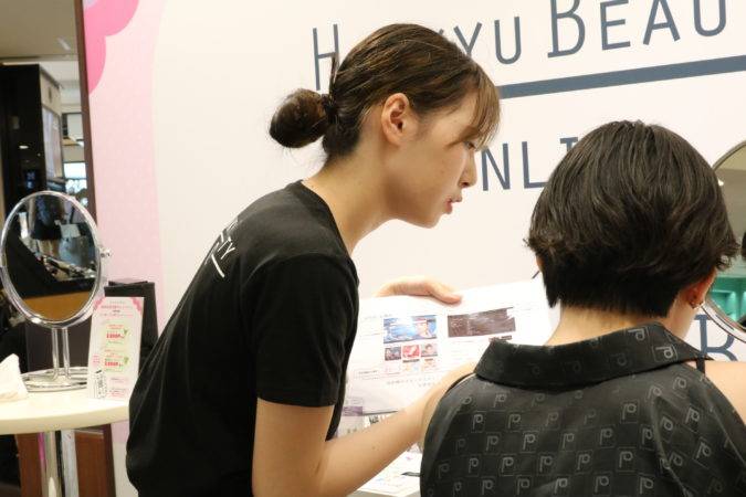 九州未上陸ブランドをお試しいただいたり、ポイントがもらえるお得な阪急オンライン会員のご案内をしました。