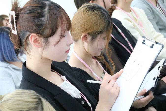 授業では、今のメイクトレンドを反映した眉の描き方や質感の出し方、アイテムの使い方をデモンストレーションつきで丁寧に解説。