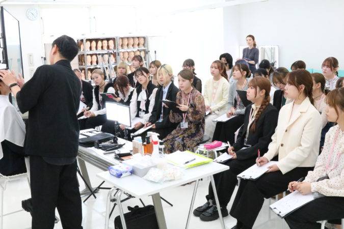 メイクアップ科の1年生にとっては、今回が初めての外部講師による授業。