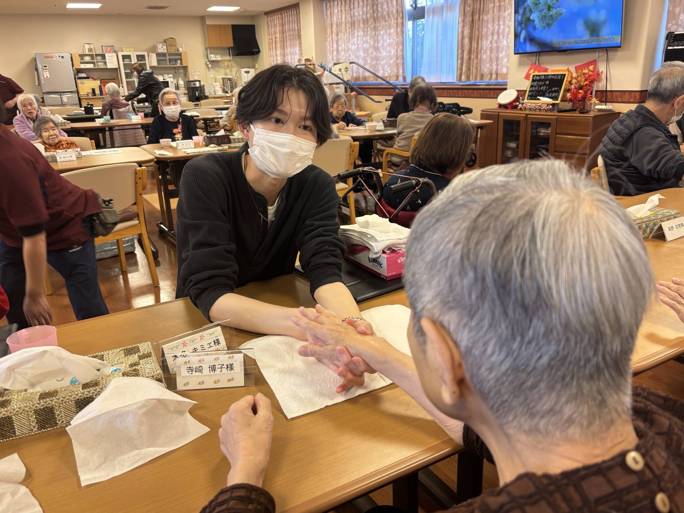 学生たちは、普段授業で身につけている技術を生かしながら、利用者の方との会話を大切にし、一人ひとりに合わせた施術を行いました。