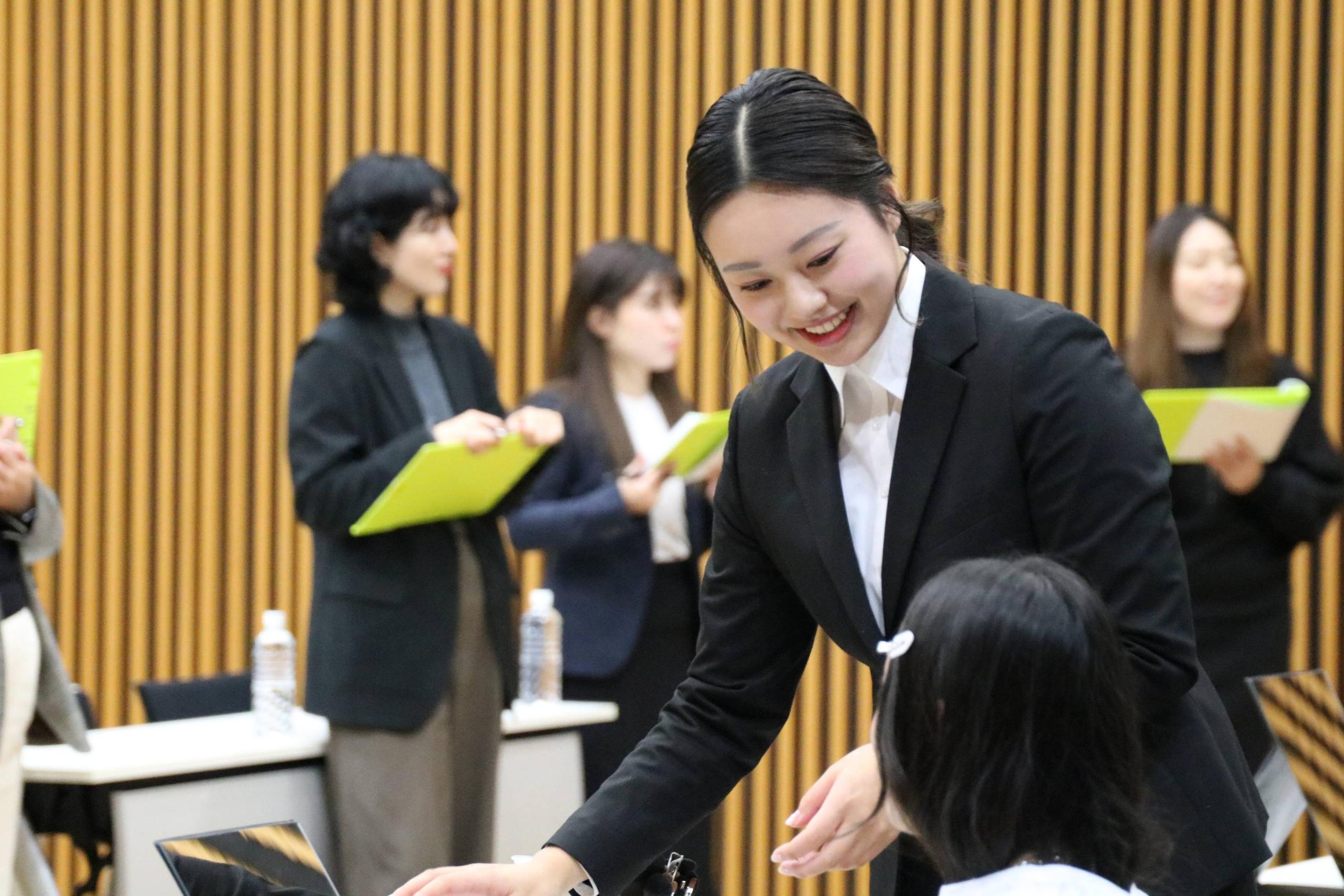 学生たちは 15分間、お客様役のモデルさんと会話をしながら