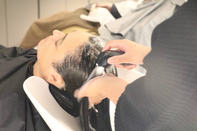 ▲国家資格を持った学生が希望を伺いカットやカラー、シャンプーブローなどを行う様子