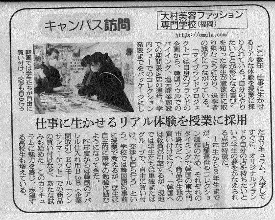 アパレル専門紙『繊研新聞』さまに取材され、ファッションクリエイター科のカリキュラム 「マイブランドプロジェクト」についての記事が掲載されました!