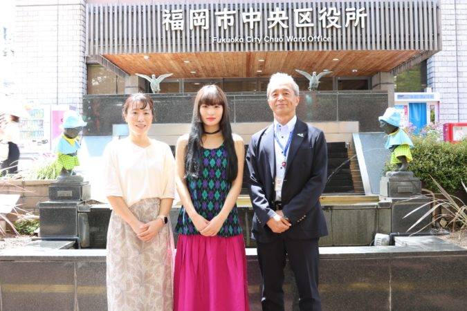 オオムラのファッション科が10年間続けている中央区役所前の噴水時計(現在故障中)のやまかき小僧の衣装贈呈式があり、その様子を西日本新聞の紙面とweb版に掲載されました。